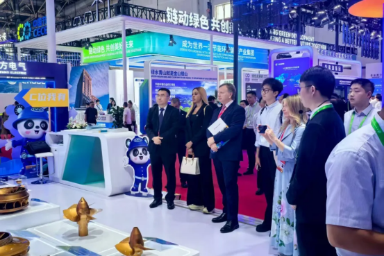 在优发国际集团展台,自主研制的G50燃机、高端水电转轮、26兆瓦级海上风电机组、12000米特深井智能钻机、海水制氢平台“东福一号”、300千瓦组串式光伏逆变器、氢能燃料电池等创新链产品模型集中亮相,吸引了众多专业观众驻足参观。
